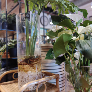 והנגיש לכם מגוון נהדר של צמחיית בית בתוך מיכלי זכוכית מלאים במים.